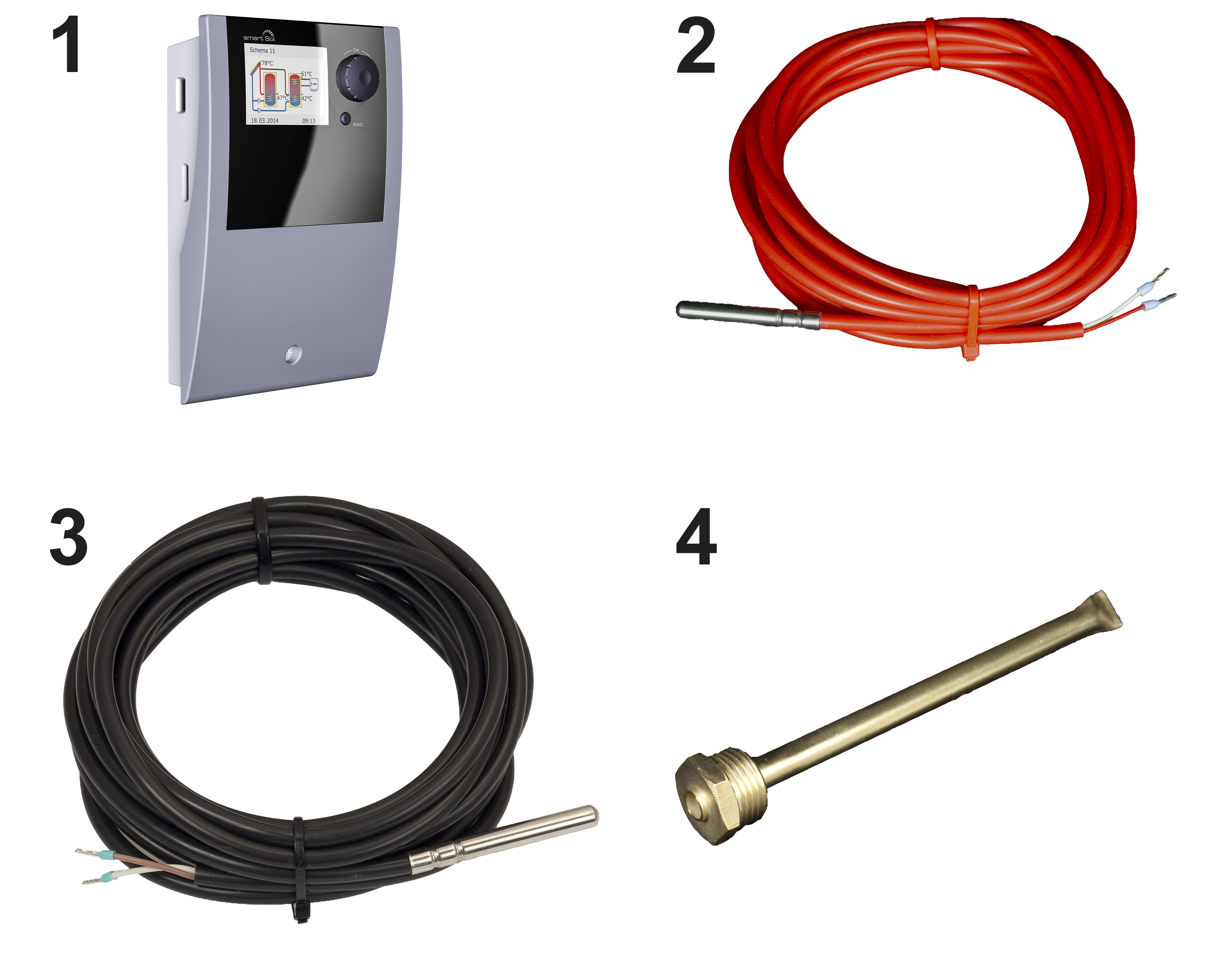 • Kaksi varaaja-anturia PT 1000 - 4 m johto