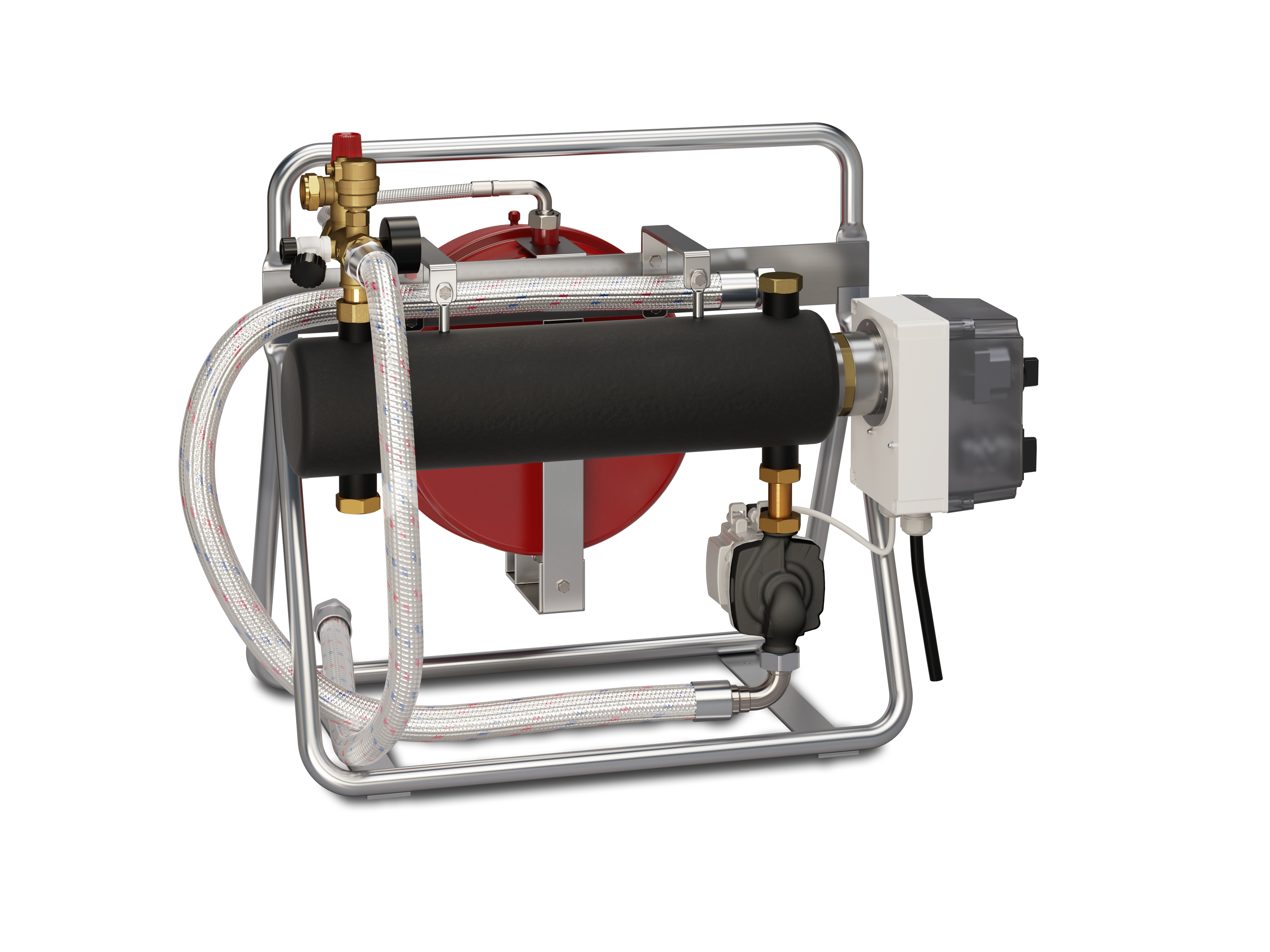 Kattila toimitetaan koottuna, ja siihen kuuluu kiertovesipumppu, paisuntasäiliö ja varustesarja, joka sisältää varoventtiilin ja ilmanpoistimen. Kytkentä lämmitysjärjestelmään tehdään helposti 1,5 m teräsvahvisteisten 1” liitäntäletkujen avulla. Lämpötilaa säädetään kattilan käyttötermostaatin avulla.