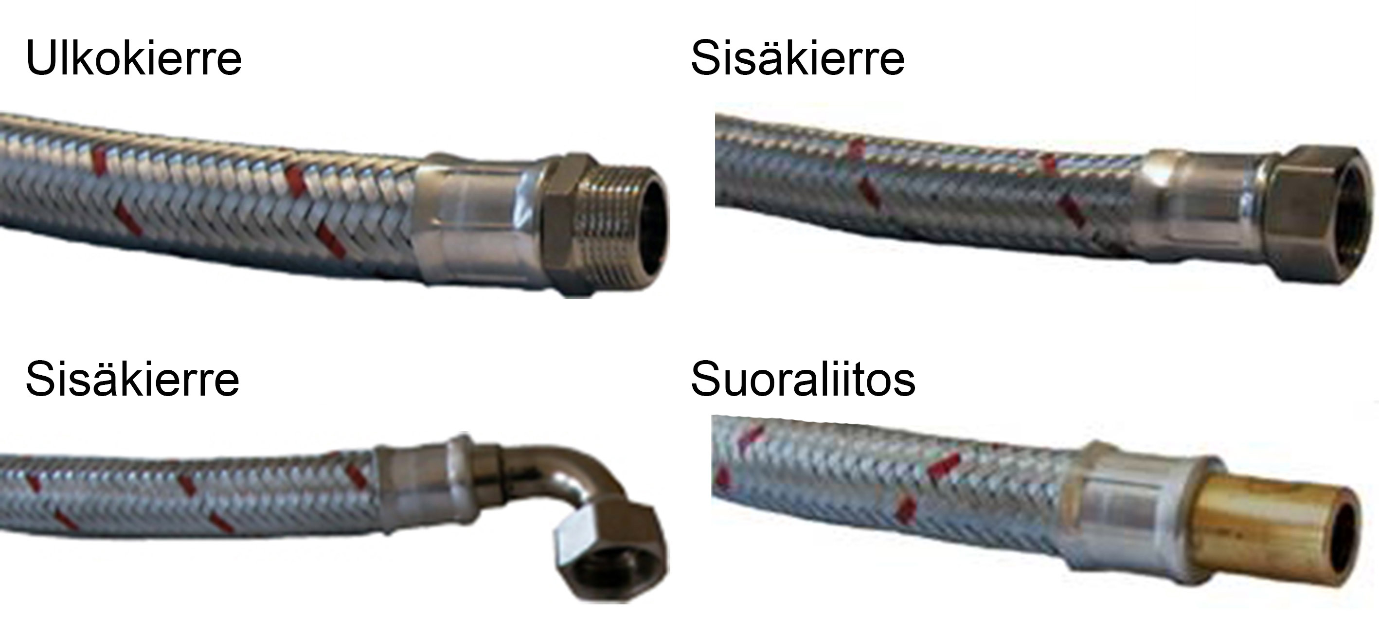 Muuta: Punos: Galvanoitu teräs mitoissa ½" - 2", lisäksi ruostumattomasta teräksestä punos mitoissa ½" - 1¼".