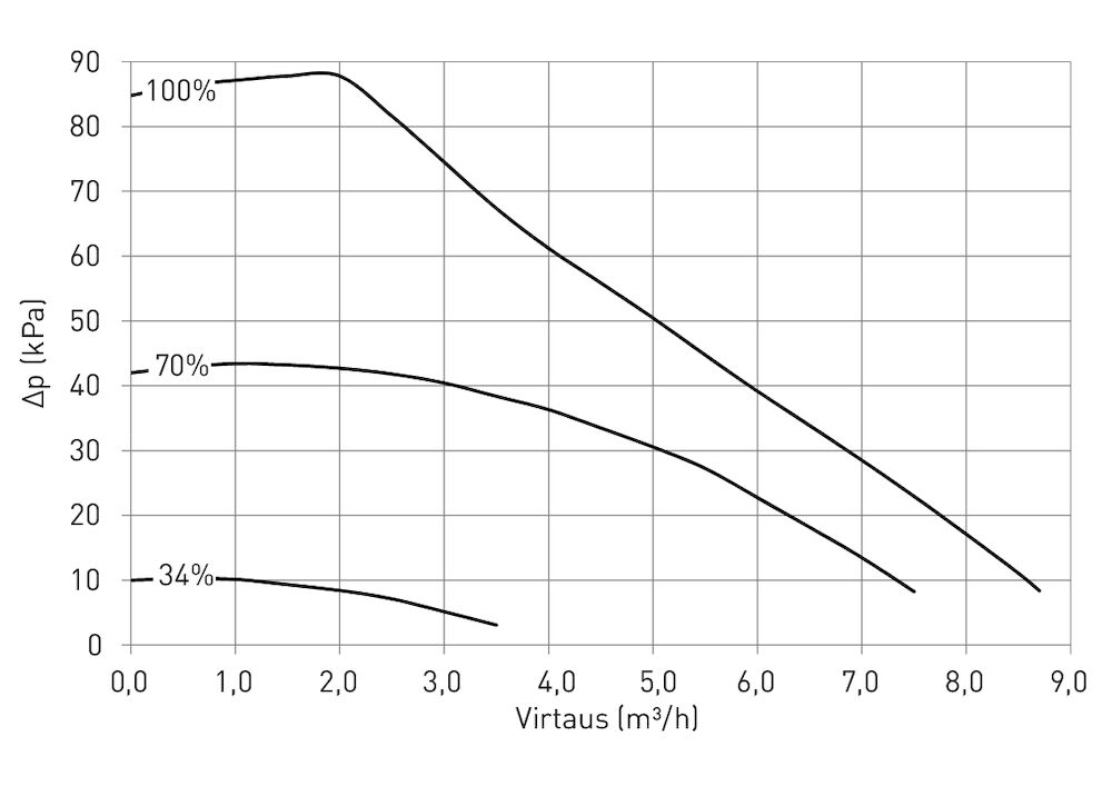 | Virtaus: | Riippuu kiertovesipumpusta |