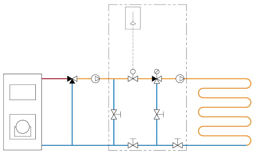 Minishunt säätää lämmitysjärjestelmän lämpötilan alemmalle tasolle lattialämmitysjärjestelmän tarpeiden