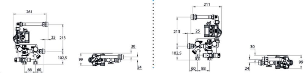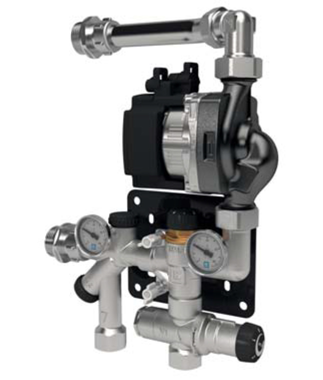 Sekoitusryhmä järjestelmiin, joissa on pääpumppu. Kapasiteetin voi asettaa kaavamaisesti, kun lämmitystarve on 50 W/m² ja lattialämmitysala enintään 200 m². Kapasiteetti riippuukuitenkin ensisijaisesta lämpötilasta, paineesta, asennustavasta jne. Mukana toimitettava tuloputki mahdollistaa vasemman- ja oikeanpuoleisen asennuksen LK lämmityspiirin jakotukkiin RF.