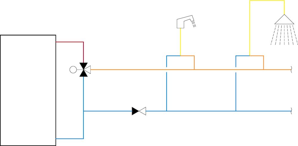 Asennettaessa kattilaan/varaajaan, jossa on sisäänrakennettu lämminvesivaraaja, kytkentä tulee tehdä lämpösulun kanssa.