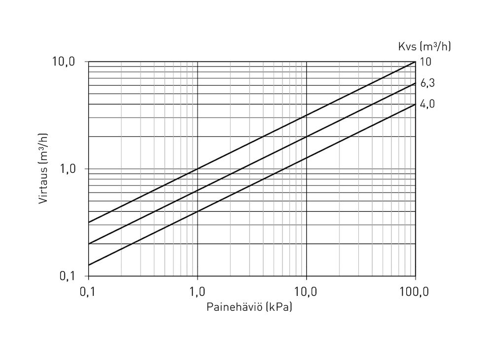 | Vuoto: | < 0,5% Kvs:stä 50 kPa:ssa |