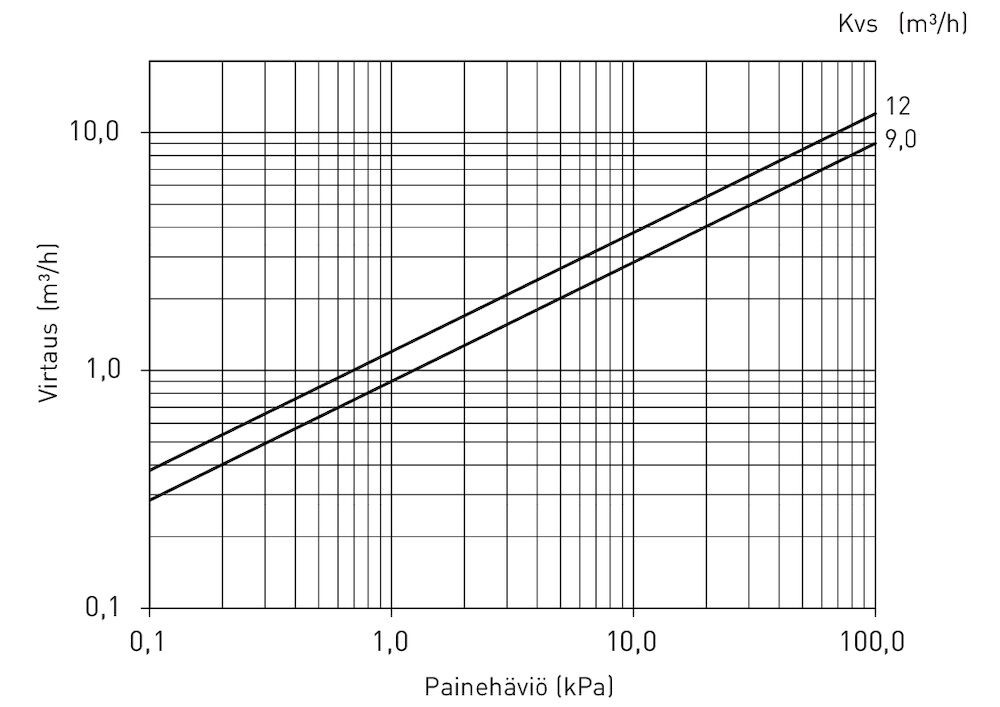 | Vuoto: | < 0,5% Kvs:stä 100 kPa:ssa |