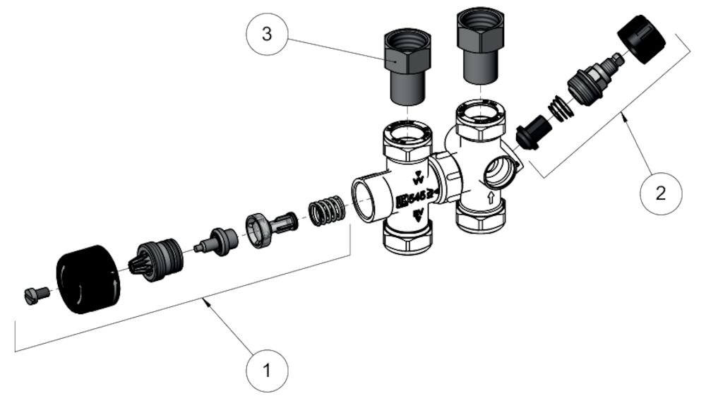Asennettaessa kattilaan/varaajaan, jossa on sisäänrakennettu lämminvesivaraaja, kytkentä tulee tehdä lämpösulun kanssa. Venttiiliyhdistelmä on huoltovapaa. Tarkista kytkentä säännöllisesti.