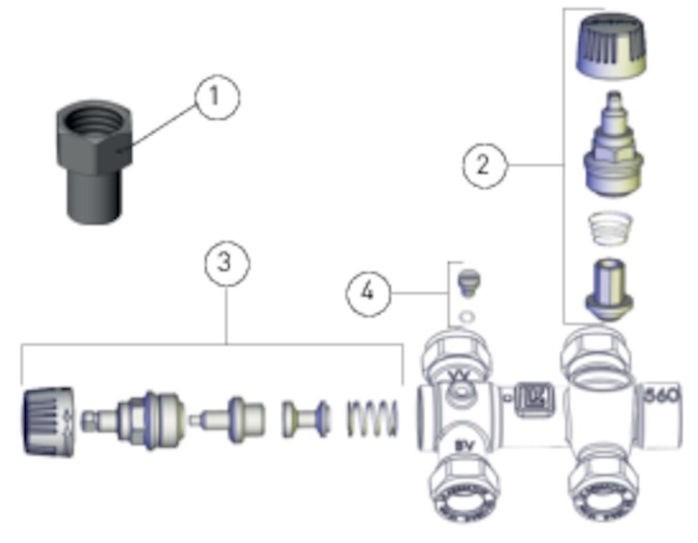 Venttiiliyhdistelmässä on erillinen ilmaruuvi lämmittimen tyhjentämistä varten.