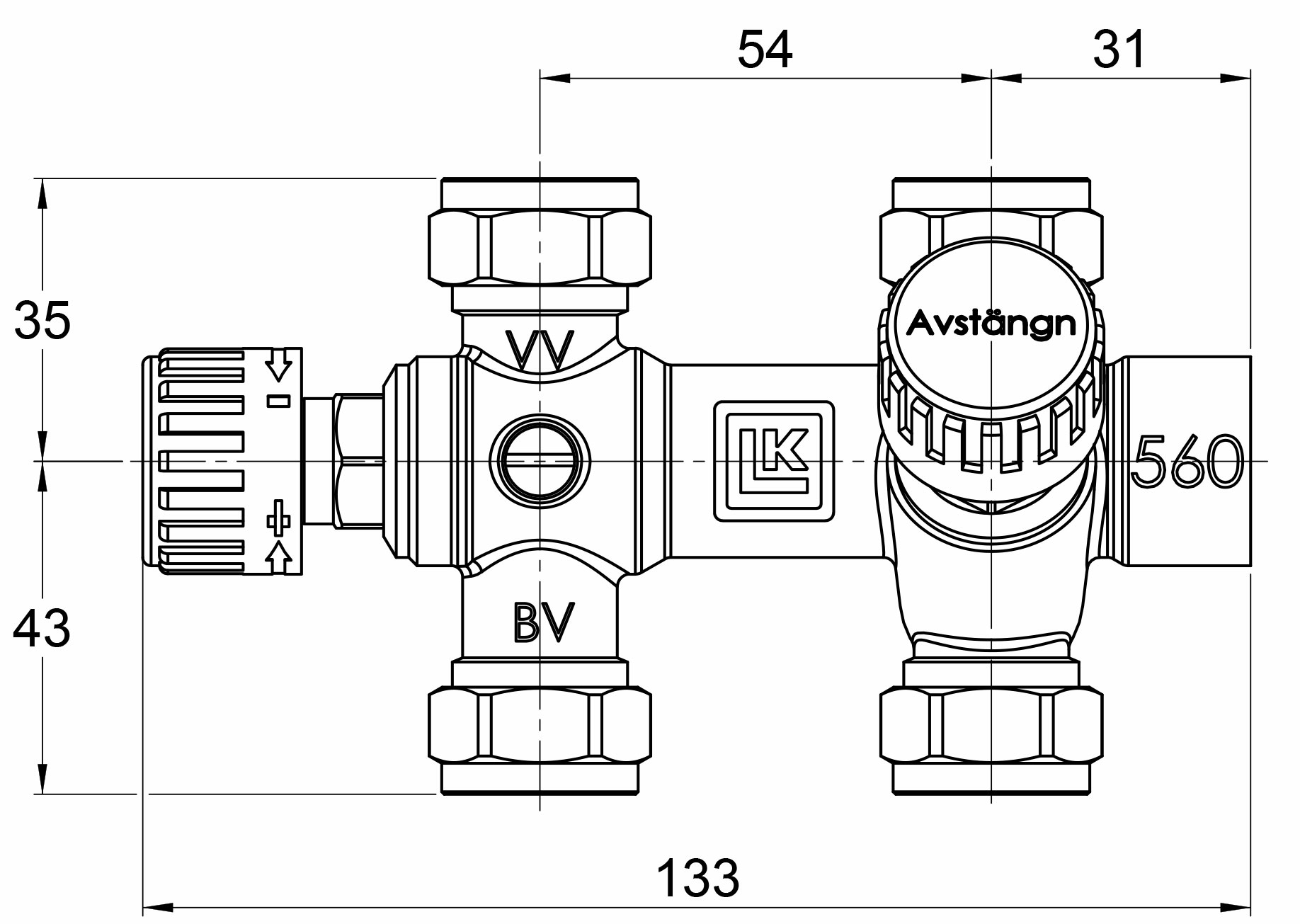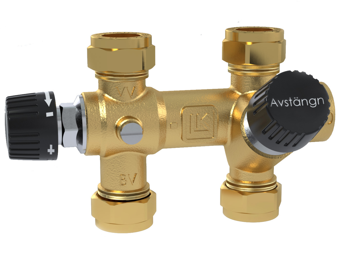LK 560 on venttiiliyhdistelmä sekoitusventtiilillä lämminvesivaraajille. Jakotukkissa on sisääntulevan kylmän veden sulku ja sisäänrakennettu takaiskuventtiili, joka estää lämpimän veden virtauksen takaisin kylmän veden tuloputkeen. Varoventtiilin asennusta varten on liitäntä sisäkierteellä G½. Sekoitusventtiili säätää kylmän veden syöttöä halutun lämpötilan saavuttamiseksi.
